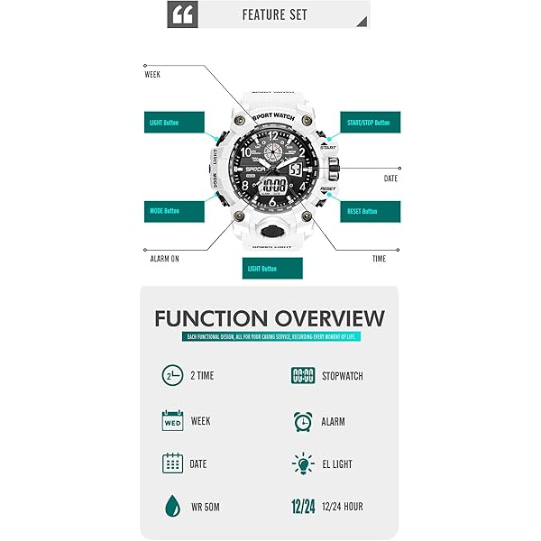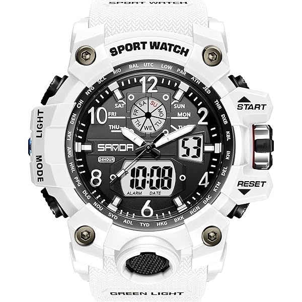 • Men's Watches Sports Outdoor Waterproof Military Wrist Watch Date Multi Function Tactics LED Alarm Stopwatch Large A White