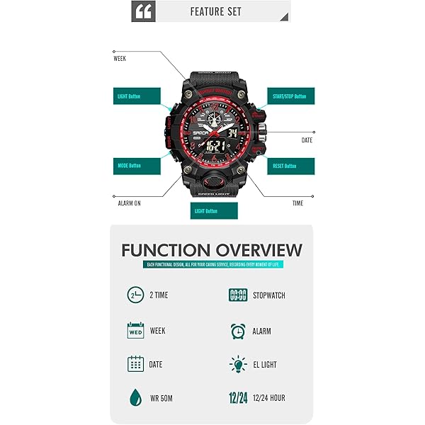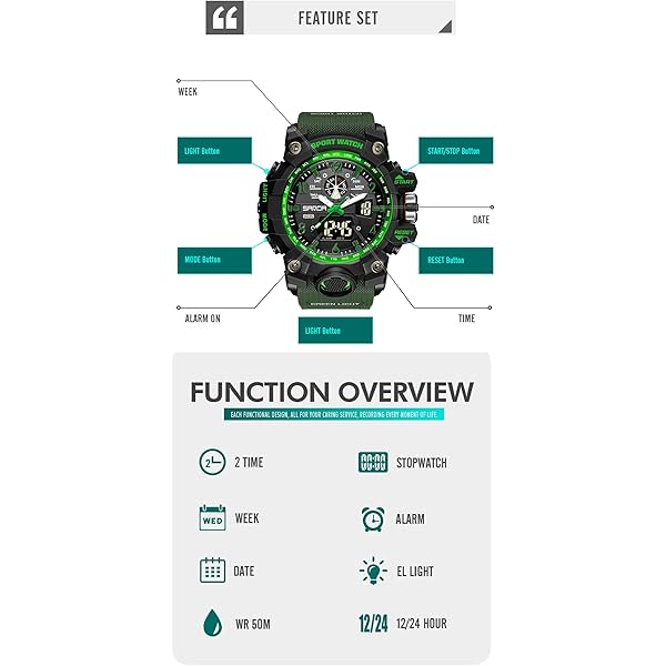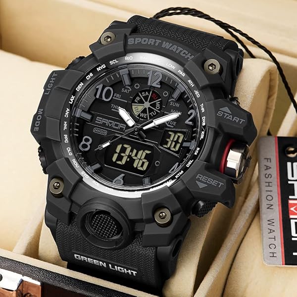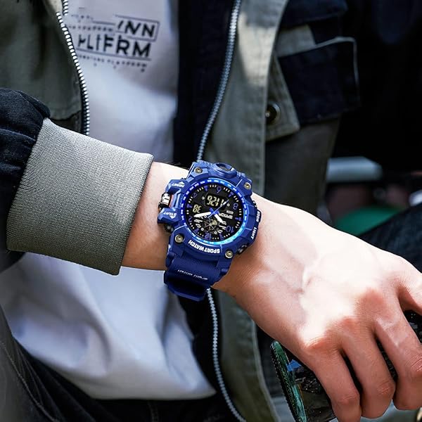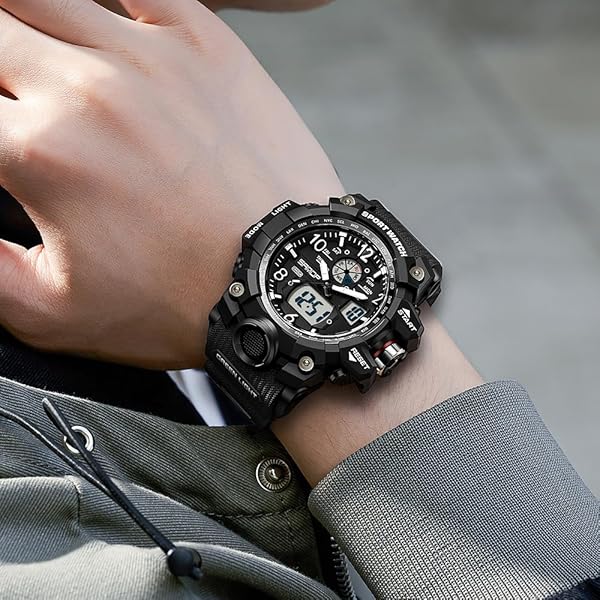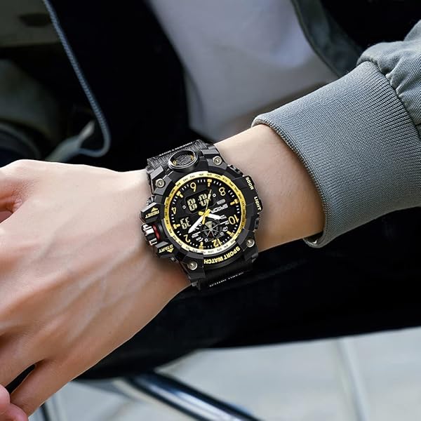 ❤Military Sport Design: Fashionable sporty dial design, military style outlook. Large Dial (acrylic crystal glass window,case diamete High quality watch band,Reinforced resin band design is more ergonomic, comfortable to wear.), who like large dial watch should love this fashion sport watch.