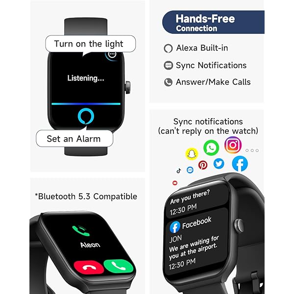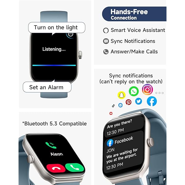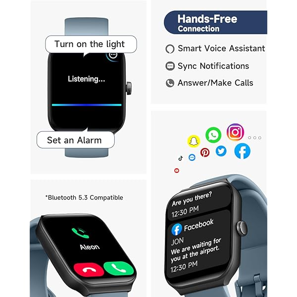 [Stay connected on-the-go] Simplify your daily routine by managing your calls and messages in one place. With Bluetooth compatibility, the smartwatch allows you to make and receive phone calls, you can also receive social media, E-mail and SMS notification right on your wrist, you will never miss an important message or notification. keeping you connected while you're on-the-go.