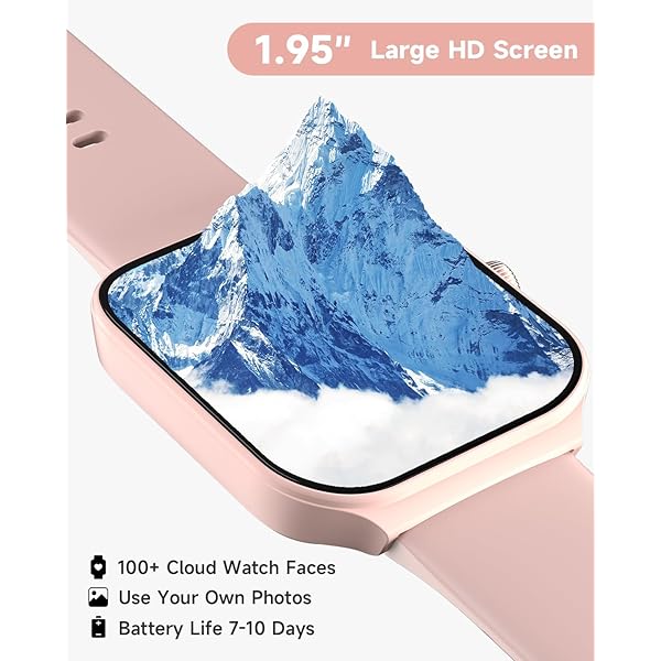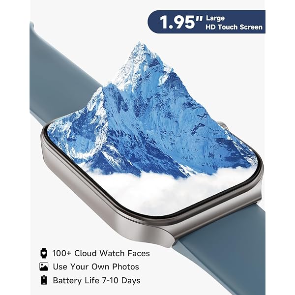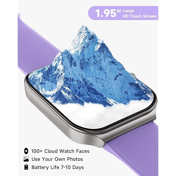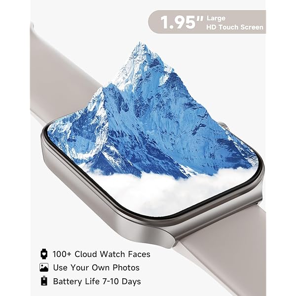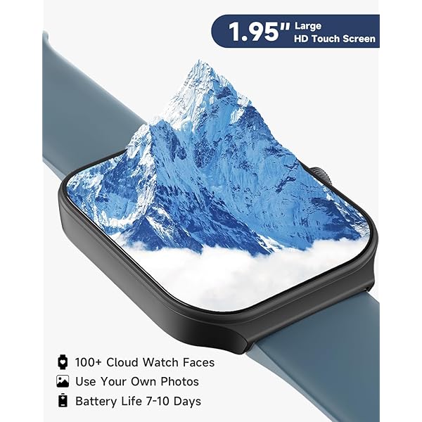 [1.95'' HD Screen & Customizable Watch Face] Experience crystal-clear visuals like never before with our smartwatch's 1.95-inch high definition screen. Choose from 100 beautiful cloud-based watch faces or even upload your own photos, such as selfies or pictures of your pets, to create a truly personalized look. With endless possibilities, you'll never run out of options to make your watch truly your own.