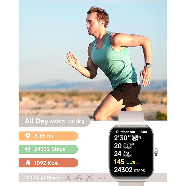 [Activity & FitnessTracker] Track your health and fitness goals with the fitness & activity tracker. The fitness watch can monitor your heart rate, and stress levels in real-time, and alert you if anything is abnormal. With over 100 different sports modes, the activity tracker allows you to easily track your steps, calories burned, distance, speed and with an IP68 waterproof, the watch is perfect for swimming and any activity. Get yours now and start tracking your progress!.